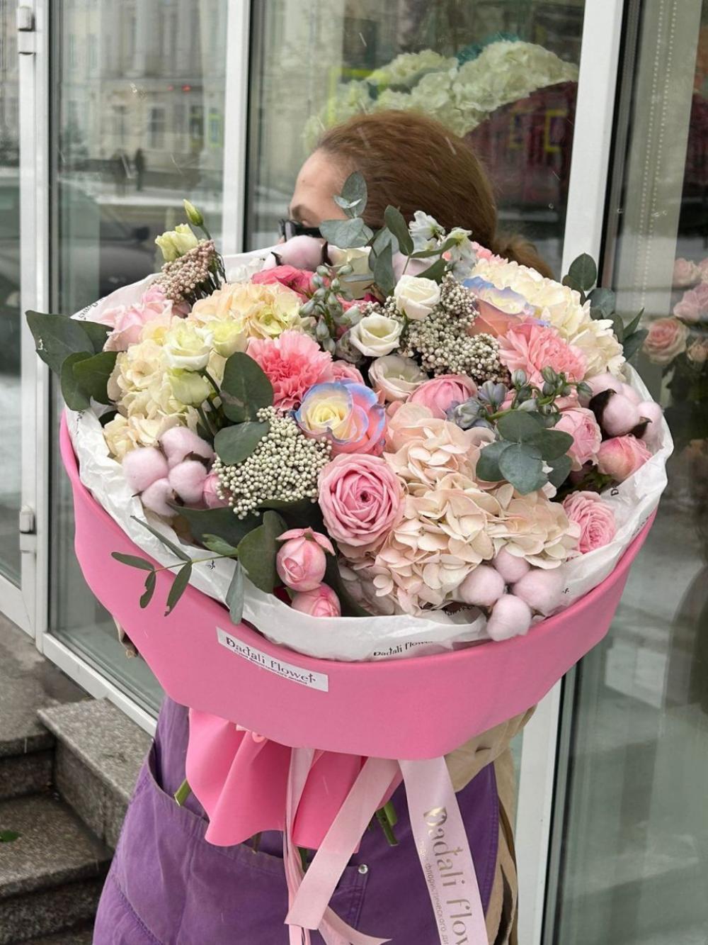 Каждый наш букет - дизайнерская композиция. Все их невозможно повторить в точности из за сезонности и природной уникальности внешнего вида каждого цветка. Но мы сохраним размер, атмосферу и стилистику.
