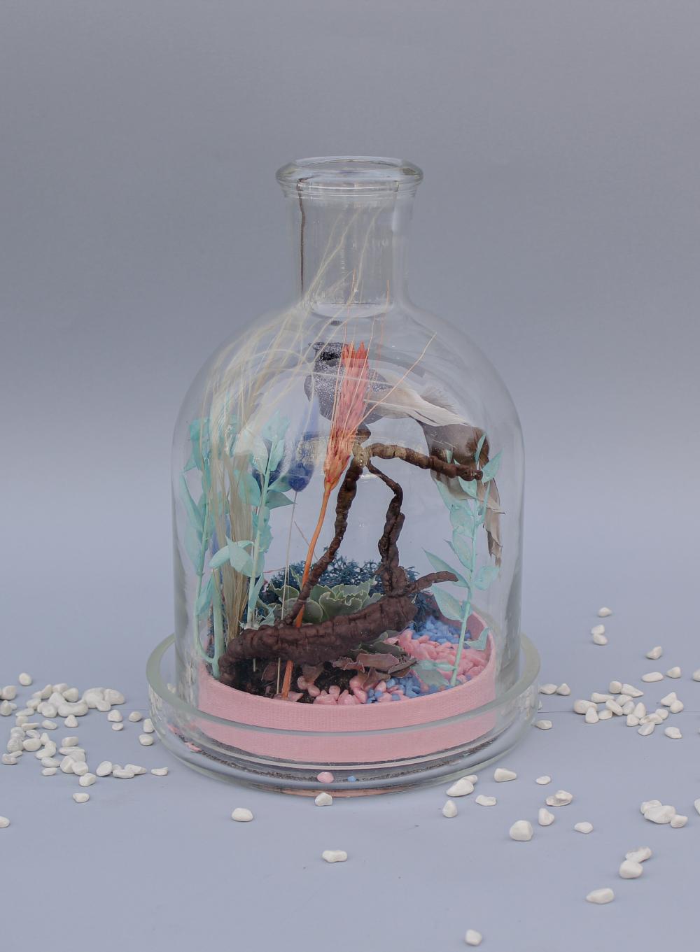 Флорариум "Северное сияние" с цветной галькой, стабилизированным мохом, сухоцветами и эхиверией для ценителей природной красоты